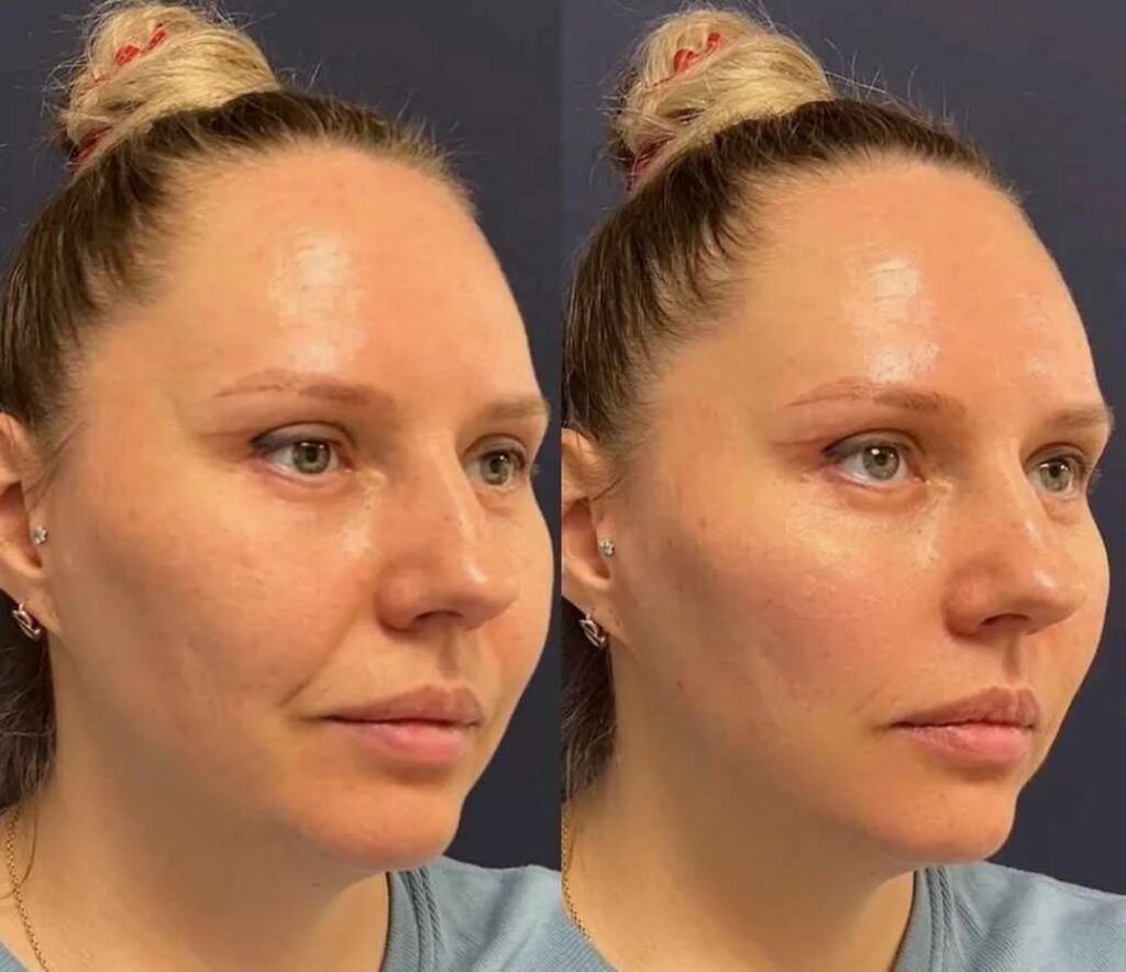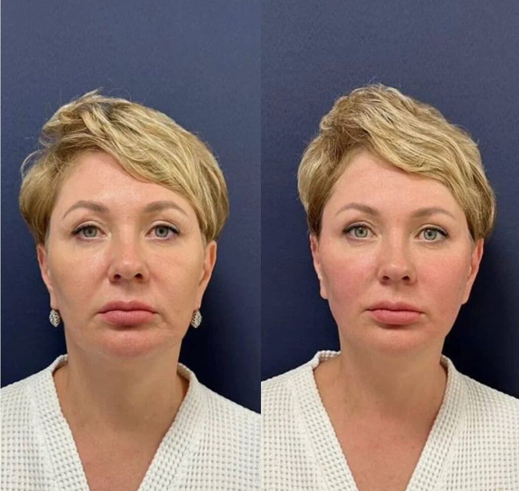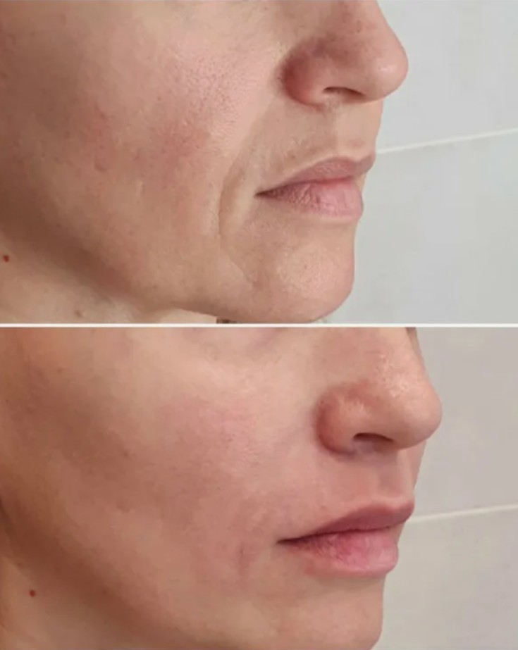 Significantly softened smile lines and laugh lines, reducing the “heavy” look of the lower face.