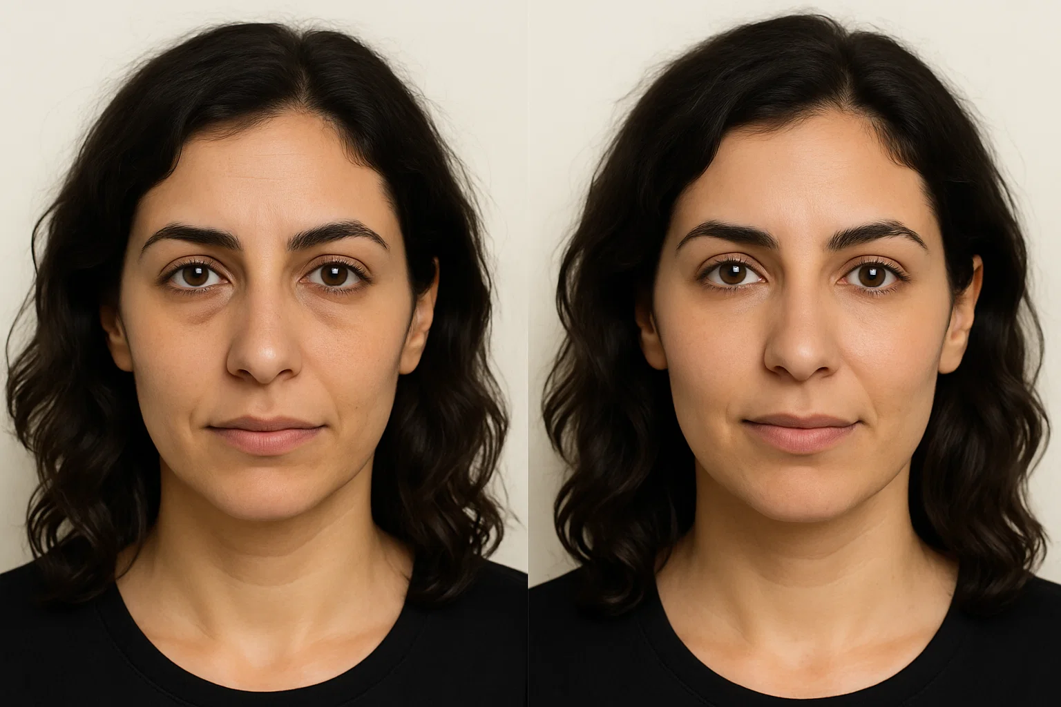 - A reduction in the severity of dark circles, as the filler reduces shadowing